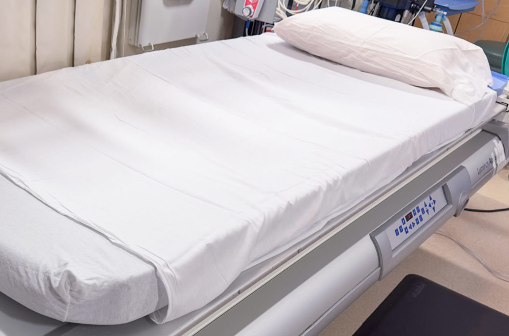 - Matelas en mousse haute densité : Un matelas basique offrant un soutien stable et durable, utilisé pour un alitement de quelques jours, pour des patients avec un rique d’escarres nul à faible
